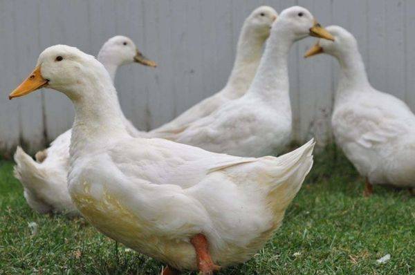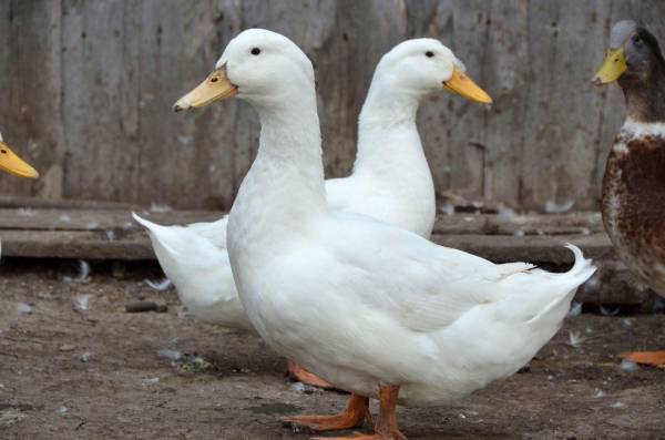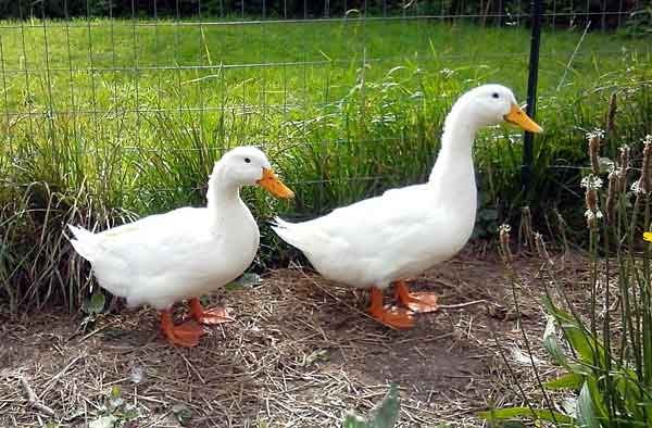 Пекинская порода. По внешности очень сложно определить, самец это или самка данной породы. Внешние данные и селезня, и утки идентичны. Птицы имеют белое оперение. Оно покрывает полностью все тельце птицы, начиная от клюва, заканчивая хвостом