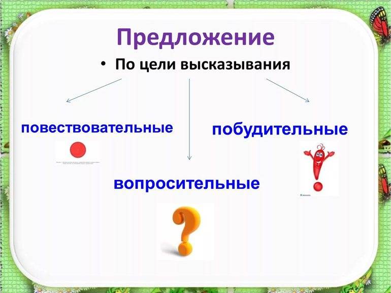 Второй вариант используется в случае, когда необходимо о чем-то спросить: «Когда ты вернешься на работу?» Последний вид используется в литературе чаще всего, ведь такие словосочетания позволяют рассказать о чем-либо. Примеры повествовательных предложений: «Египет — это страна африканского континента», «правила умножения написаны в таблице».