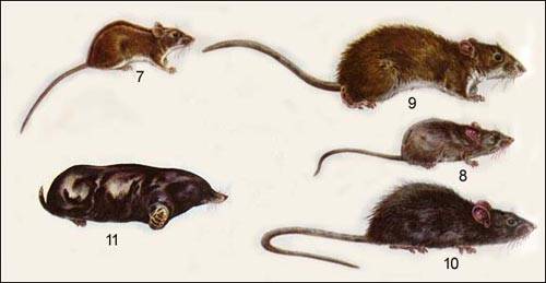 В жилых домах встречаются мелкие животные нескольких видов. Рядом с человеком обитает домовая мышь, а также серая, черная или рыжая крыса.