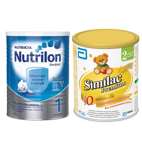 Детские смеси Nutrilon Комфорт считаются отличным заменителем грудного молока. Продукция подходит для сбалансированного питания малышей. Similac Premium обладает более широким спектром действия, благодаря наличию в составе смеси минералов, витаминов и макроэлементов, смесь успешно поддерживает иммунитет детей, улучшает работу их желудочно-кишечного тракта.