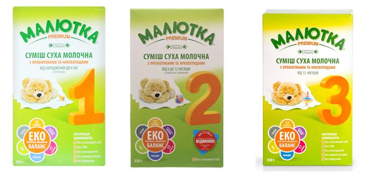- В зависимости от возраста малыша, смесь подразделяется на «Малютка Премиум 1,2,3»