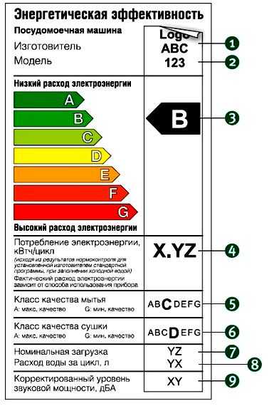 Классы показывают, насколько качественно данная ПММ моет и сушит посуду. Существует три уровня выполнения этих задач; показатели маркируются латинскими буквами, а именно: