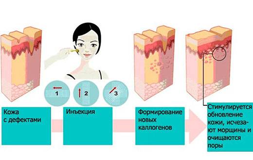 - многократные инъекции оказывают на кожу массажное и акупунктурное воздействие;
