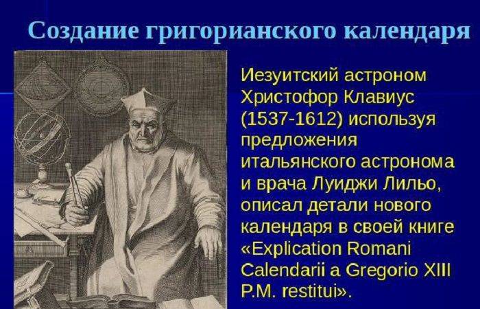 И тогда Римские Папы пришли к пониманию того, что календарь не точен и его нужно усовершенствовать. Папой, который провёл календарную реформу, стал Григорий ХIII. Именно в честь него новый календарь и был назван григорианским. До Григория ХIII попытки изменить календарь предпринимали папы Павел III и Пий IV, но их попытки были не успешны. Новый, григорианский, календарь был введён 4 октября 1582 года. Разработкой календаря по поручению папы занимались астрономы Христофор Клавиус и Алоизий Лилиус. После введения нового календаря в 1582 году за датой 4 октября четверг сразу же последовала новая дата – 15 октября пятница. Именно настолько юлианский календарь к тому времени отставал от григорианского.