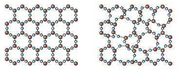 Молекулы кварца: а) кристаллического, б) аморфного.