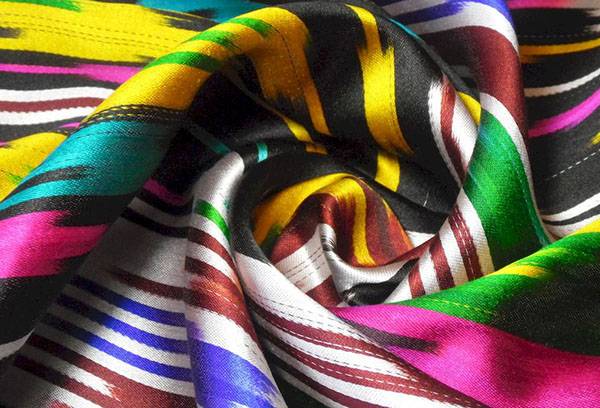 - Набивной – так называют полотно с орнаментом. Узор наносится реактивной и пигментной печатью. В первом случае красящий пигмент соединяется с волокном – материя остается мягкой и не линяет. Во втором краску наносят на лицевую сторону, соответственно, она менее стойка к выгоранию и стирке.