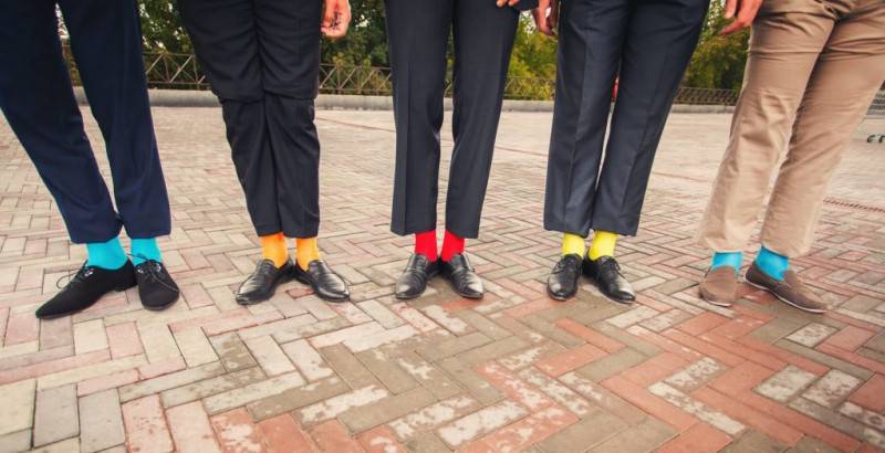 А какие носки нужно носить? Первое и основное правило: носки нужно подбирать по цвету к обуви, а не к брюкам. Существует и другое мнение, обратное, при котором носки подбираются к брюкам. В случае, если брюки намного светлее полуботинок, оттенок носков должен быть средним, обеспечивающим плавный переход от костюма к обуви.