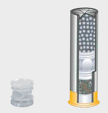 Оружейники освоили производство полиэтиленовых контейнеров для патронов, заряженных дробью, которые выполняют дополнительную функцию обтюратора. Они отводят пороховой газ от ствольного канала и пояска пули. На этом свойства пыжного контейнера не завершаются. С его помощью стрелок: