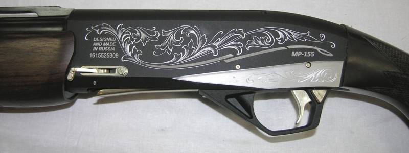 Приклад и цевье гладкоствольного ружья МР 155 выполнены из качественной древесины ореха, для дополнительной защиты и проявления рисунка обработаны маслом.