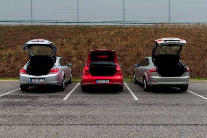 С точки зрения практичности, формально, хуже всех Фольксваген Пассат, так как он имеет стандартный кузов седан. Но его багажник самый большой по вместительности – 565 литров. В то время как у Форда 540 литров, а у Опеля 530 литров.