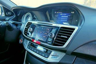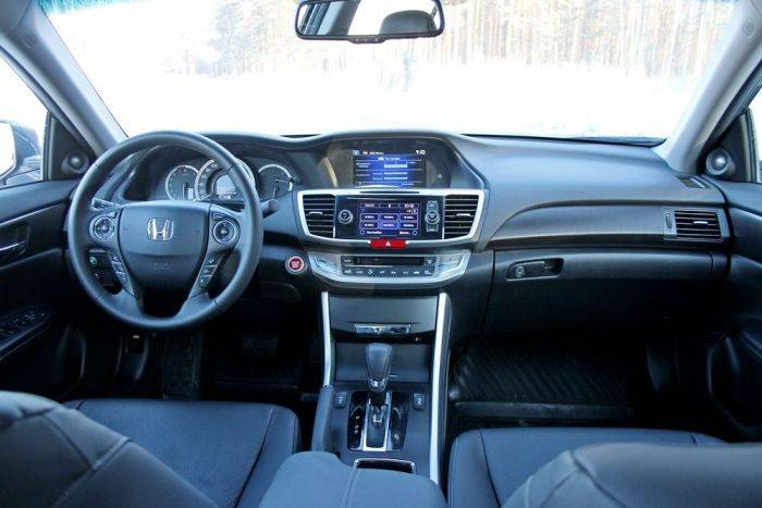 Обстановка на водительском месте в Honda Accord мне понравилась по всем статьям. Многоэтажная приборная панель определенно радует глаз своеобразными очертаниями, да и по удобству управления нет вопросов. Меня напрягла только система настройки радио и сохранения станций в памяти, но, думаю, это с непривычки.