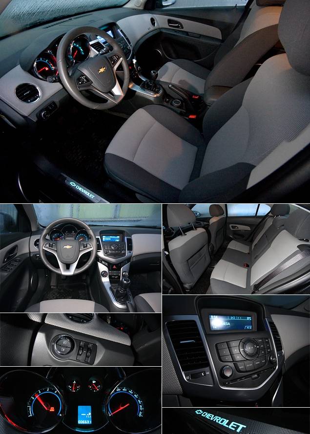 Тканевая обивка передней панели, пороги с кичевой подсветкой надписи “Chevrolet”, скульптурные формы центральной консоли – “Круз” встречает потенциального покупателя во всеоружии.