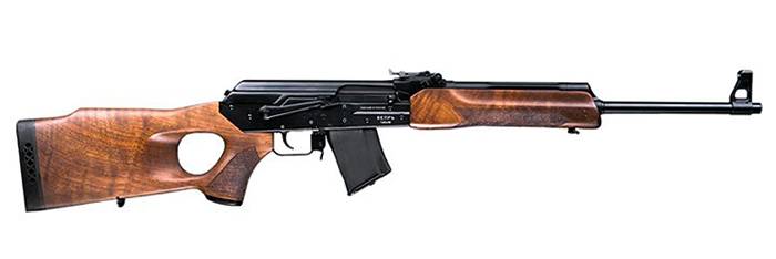 Отсутствует крепление штыка, газовый регулятор, укорочен ствол, изменена геометрия, шаг нарезов — отличительная примета гражданского оружия. Отъемный коробчатый магазин вмещает 5, 10 патронов.