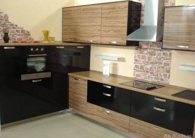 Для кухни нужно, чтобы мебель выдерживала температурные колебания и повышенную влажность. Дверцы шкафов постоянно поддаются механическому воздействию, их открывают мокрыми руками. Поэтому фасад обычно делают из МДФ, а боковые стенки и полочки – из ЛДСП. Это связано с особенностями материалов.