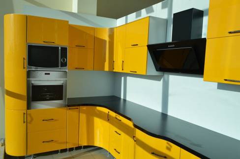 В пленочном МДФ есть ограничения по размерам и видам фасадов, так как нестандартные детали обойдутся значительно дороже. Именно поэтому кухни с пленочными фасадами часто имеют корпус из ламинированного ДСП и только фасады из пленочного МДФ. В крашенном эмалью МДФ у Вас таких ограничений не будет и Вы сможете сделать в нужном цвете любые элементы кухни.