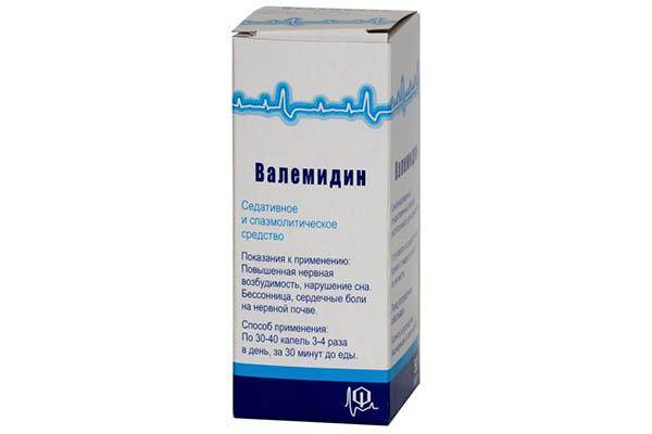 Валемидин представляется в виде спиртовых капель буро-зеленого цвета, которые характеризуются неприятным запахом. В составе присутствует настойка пустырника, валерианы, боярышника и димедрол. Допустимый возраст – старше 18 лет.