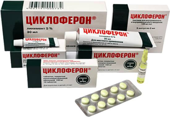Циклоферон выпускается в России, обладает противовирусной, иммуномодулирующей, противовоспалительной активностью. Являясь низкомолекулярным индуктором интерферона, на ранних сроках подавляет размножение вируса, усиливает защитные свойства организма больного человека против вирусных, бактериальных и грибковых инфекций.
