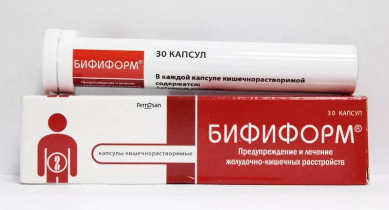Этот препарат тоже является пробиотиком, который применяется для восстановления нарушенной микрофлоры кишечника. Помогает «Бифиформ» и от вздутия живота. Выпускается препарат в форме капсул, жевательных таблеток и порошка со вкусом апельсина и малины. Он применяется обычно для лечения метеоризма у маленьких детей. В состав препарата входят не только живые бактерии, но и молочная закваска, а также витамины B1 и B6. При приеме лекарства в строго указанной дозировке побочных эффектов обычно не появляется. Противопоказанием является повышенная чувствительность, а также непереносимость лактозы.