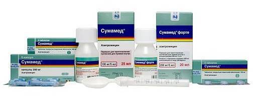 Лекарственный препарат Сумамед представляет антибиотики группы макролидов-азалидов. Его активным компонентом является азитромицин.
