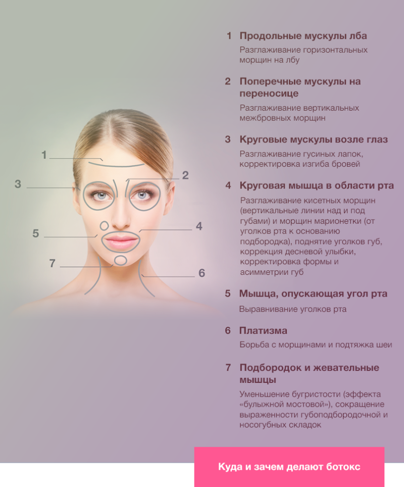 - После инъекций кожа расслабляется, что вызывает естественное разглаживание морщин.