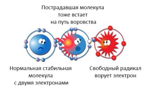 Напомню, что свободные радикалы – это нестабильные и потому чрезвычайно активные атомы или молекулы. В небольших количествах они организму нужны, но когда их избыток, они превращаются в беспощадных агрессоров и разрушают все, что попадет им под руку. Они кромсают клетки, молекулы, в том числе, молекулы ДНК, и вызывают клеточные мутации.