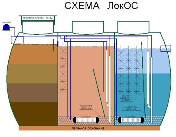 Обращаем Ваше внимание, что и биологическая очистка в “ЛокОС”, реализована с использованием различных видов бактерий анаэробных и аэробных, это сделано в расчете на особенности российской эксплуатации (отключение электроэнергии, при отсутствии источника резервного питания). Биологическая очистка в “ЛокОС” происходит в три основные стадии: