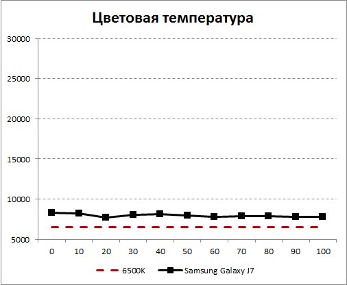 Достигнуть «идеала» мешает нарушенный баланс белого – температура белого превышает эталонное значение где-то на 1200-1300K, что означает придание холодного оттенка изображению. С другой стороны, превышение не очень существенное – чаще оно вдвое больше.
