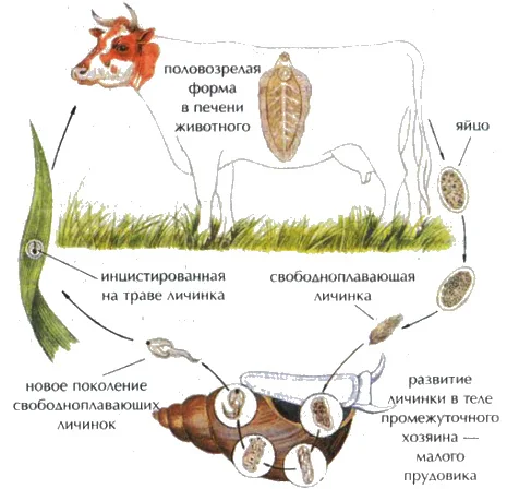 У сосальщиков сложный жизненный цикл, необходимый для эффективного размножения. На разных стадиях развития у них меняются хозяева. Так, улитка малый прудовик — промежуточный хозяин печеночного сосальщика, в котором размножаются личинки.