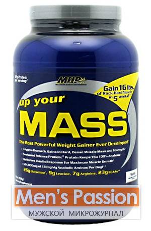 Up Your Mass включает 58 г углеводов, 54 г жиров, и 11 г жирных кислот. Белковая сыворотка, состоящая из казеина и сои, представляет собой продукт, рассчитанный на большой срок действия, который может подпитывать мышцы в течение нескольких часов. Добавленные в смесь разветвленные аминокислоты облегчают восстановление и не позволяют мышечному белку выйти из тела.