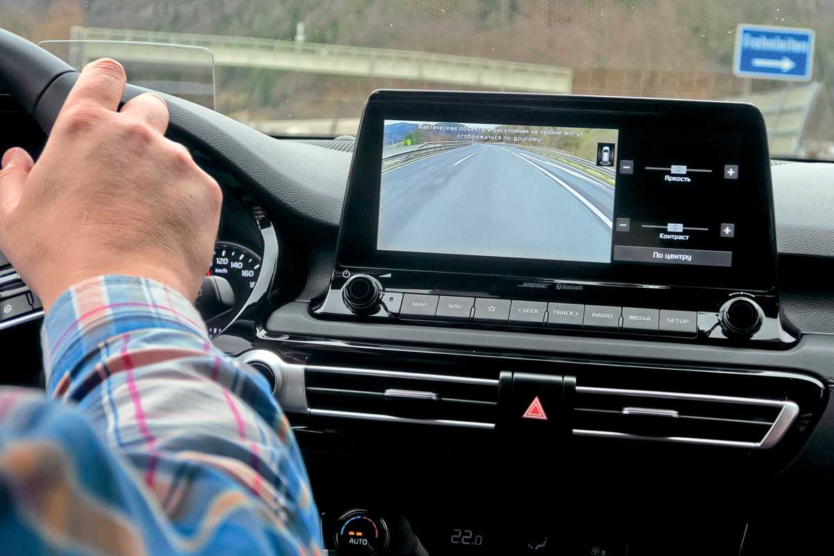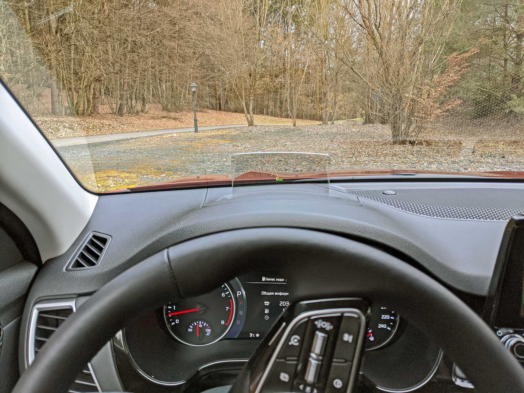 Есть и проекция на лобовое стекло, хотя нельзя не отметить, что выполнено это довольно дешево, с выдвижным стеклом, причем информация попадает на щетки дворников.