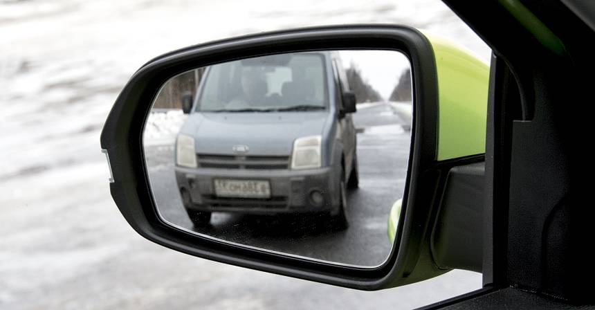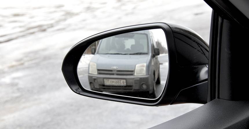У Rio и Соляриса стойки тоньше вестовских, а зеркала, наоборот, меньше. Но в Kia «устройства непрямого обзора» правильной формы, а в Hyundai — приплюснуты. Благо помогает салонное зеркало: в Солярисе самый большой проем заднего окна.