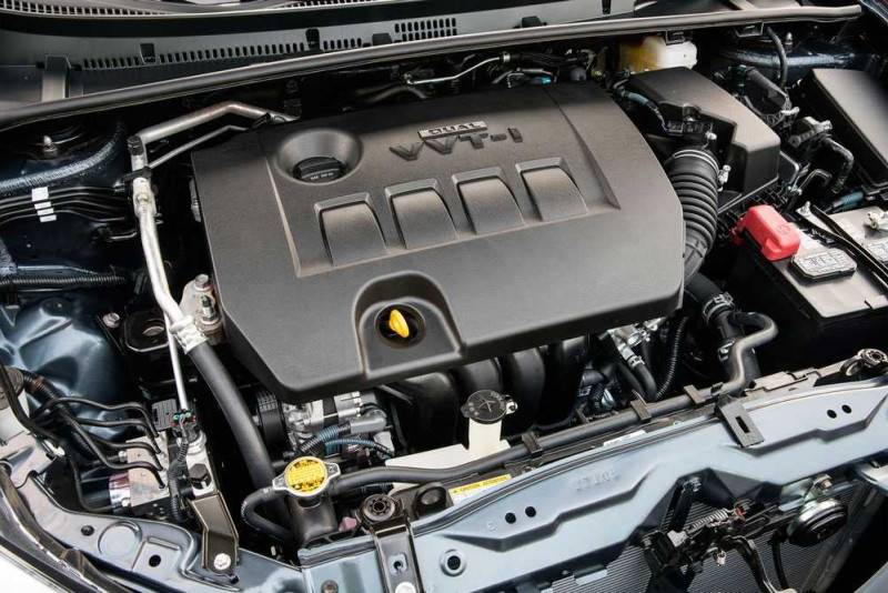 Toyota Corolla оснащается всего одним двигателем, доступным на российском рынке. Это атмосферный 4-цилиндровый бензиновый агрегат объёмом 1,6 литра и мощностью 122 лошадиные силы с крутящим моментом 153 Нм. Стандартно сочетается с 6-ступенчатой механикой, но за доплату можно поставить бесступенчатый вариатор с гидротрансформатором.