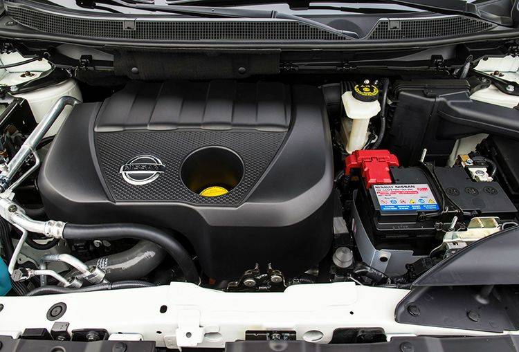В арсенале Ниссан Кашкай имеется 3 двигателя – 2 из них бензиновые, 1 дизельный. Первый бензиновый турбированный двигатель с небольшим в 1.2 л. объемом, 115 л. сил при 4500 оборотов в минуту. Этого хватает для внедорожника, тем более с крутящим моментом 190 Ньютон на метр. Разгон с таким мотором составляет – 11.0 секунд, а средний расход горючего всего 5.7-6.3 литра.