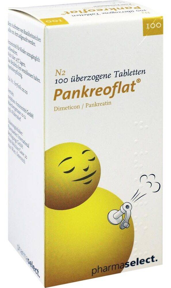 Содержит все необходимые пищеварительные энзимы. Он доступен в форме желатиновых капсул, которые можно открыть и перемешать с пищей или напитками перед приемом. Панкреофлат хорошо переносится детьми и обладает хорошей эффективностью в лечении панкреатической недостаточности.