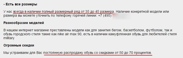 Обычно магазин объясняет это якобы «эксклюзивным контрактом» на прямую поставку кроссовок с китайской фабрики-производителя, или у них идет «постоянная распродажа». В общем, там будет написано любое другое оправдание низкой цены уровня школьного сочинения.