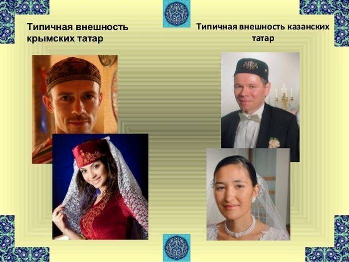 На фото представлены крымские и казанские татары, где прослеживаются черты, чем между собой отличаются этнические группы.