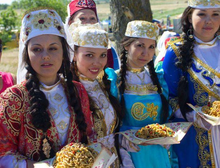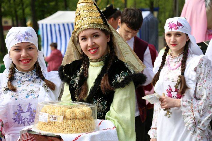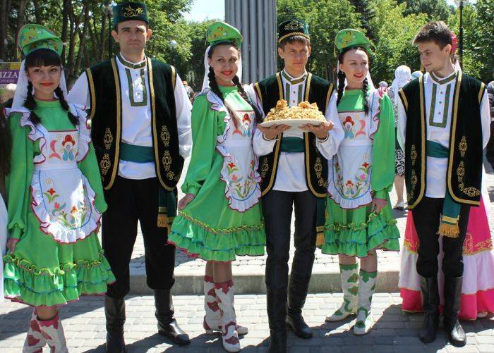 Женщина-татарка — прекрасная хозяйка, любящая, гостеприимная. Кстати, немного о кухне. Национальная кухня татар достаточно предсказуема в том, что основу главных блюд нередко составляют тесто и жир. Даже много теста, много жира! Конечно, это далекое не самое здоровое питание, хотя гостям, как правило, предлагаются экзотические блюда: казылык (или вяленая конина), губадия (представляет собой слоеный пирог с большим разнообразием начинок, от творога до мяса), талкыш-калева (невероятно калорийный десерт из муки, масли и меда). Запить же всё это богатое угощение можно айраном (смесь катыка и воды) или традиционным чаем.