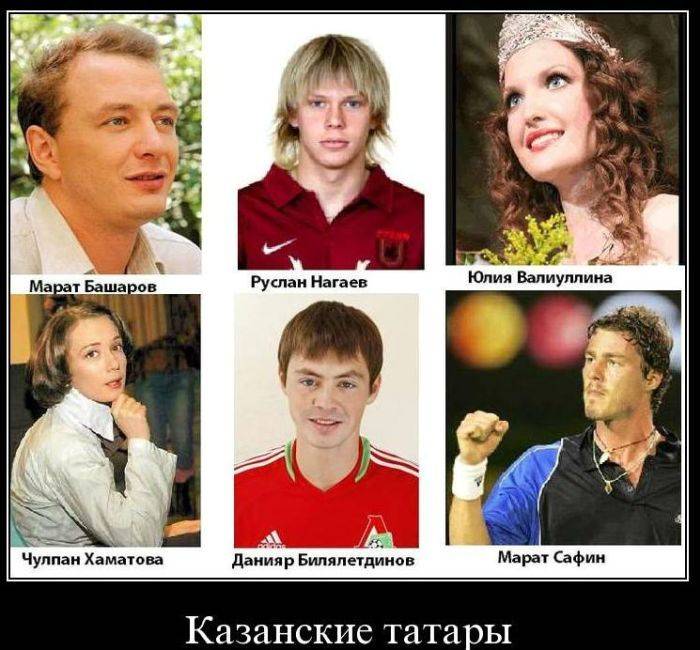 Смешанность расы, к какой относятся татары, позволяет видеть среди ее представителей темноволосых и светлых, рыжих, кареглазых, с серыми глазами и так далее.