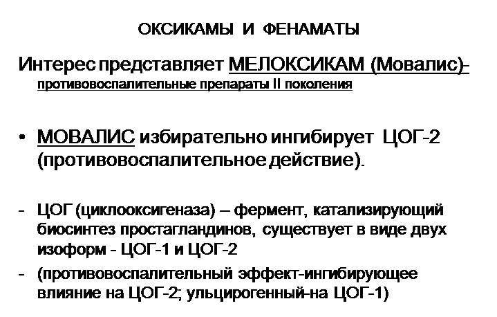 Мелоксикам;Нимесулид;Этодолак;Рофекоксиб;Целекоксиб.