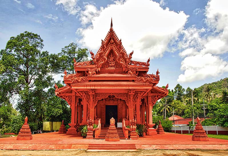- Красный храм (Wat Ratchathammaram) – храм, выполненный полностью в красном цвете, удивительное зрелище на фоне голубого неба.