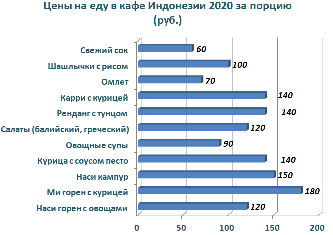 Индонезия славится не только своими достопримечательностями и историческими памятниками, но и кухней. Кухня здесь жирная и пряная. Возможно, что необычное сочетание ингредиентов вас поразит. Вы сможете поесть в дешевых столовых, которые получили интересное название warung. Дуриан является королем азиатских фруктов, его считают лучшим афродизиаком. Отведайте и изумительный десерт — жареные бананы.