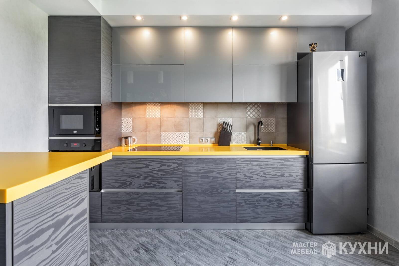По своим свойствам эмаль ближе всего к крашеному МДФ. Мелкие дефекты тоже можно исправить без замены всего фасада. Форма кухни может быть любой, дверцы могут быть резными