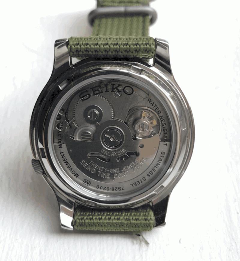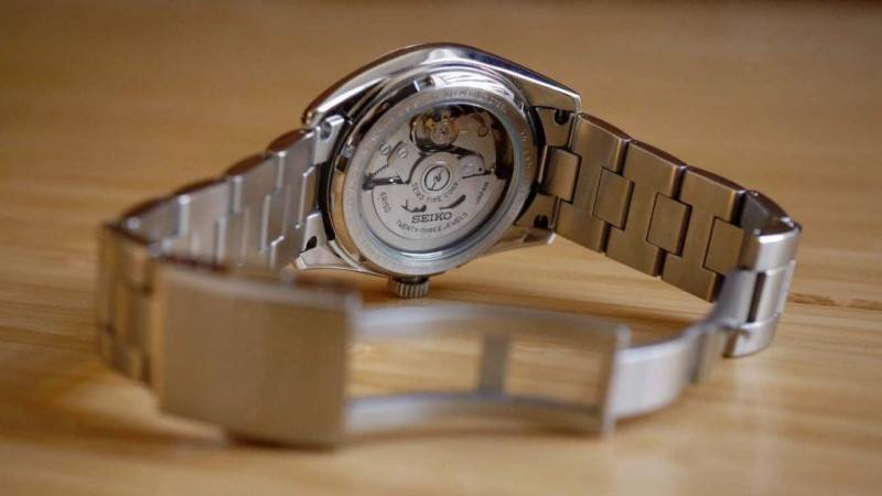 Полукруглый диск с логотипом SEIKO (ротор) вращается, когда вы поворачиваете и размахиваете рукой в течение дня, заводя механический механизм.