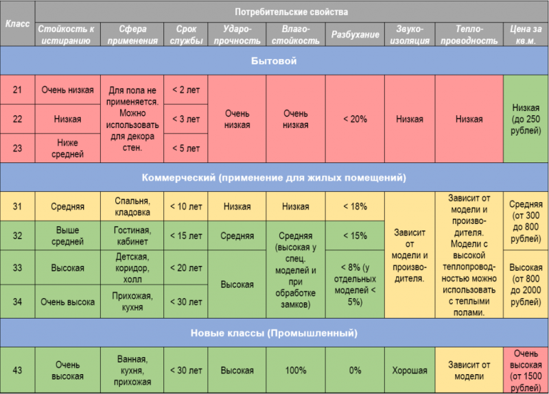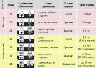 Например, номер 31 используется довольно редко. Во-первых, он самый непрочный в своей линейке, и, хотя иногда его покупают из-за низкой стоимости, данный выбор оказывается неоправданным. Во-вторых, срок службы данного напольного покрытия по сравнению со своими «старшими братьями» относительно недолог – около 6 лет, да и то, только в условиях низких нагрузок. Учитывая, что уже класс 32 прослужит едва ли не в два раза больше, выбирать данный вариант нужно, только хорошо все обдумав.
