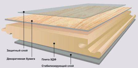 Заявленные производителем эксплуатационные характеристики ламината обеспечивает последний трёхкомпонентный износостойкий защитный слой. Его толщина подбирается так, чтобы уложенное покрытие не боялось внешнего воздействия.