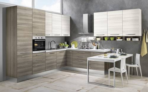 В производстве мебели для кухни ЛДСП используют для изготовления всех элементов: корпусов, фасадов и столешниц. Ламинированную древесно-стружечную плиту изготавливают из древесных стружек и опилок, пропитанных смолами. Под воздействием давления и высоких температур ее покрывают декоративным ламинирующим слоем.