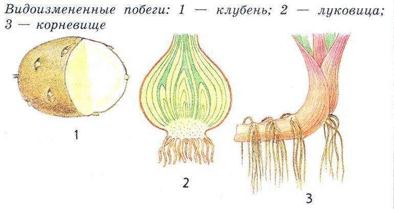 Корневище, клубень и луковица растений – это разные типы измененных побегов. Схожи они тем, что имеют коротенькие междоузлия, накапливают большой запас микроэлементов и других питательных веществ. Эти органы растения не содержат хлорофилла.