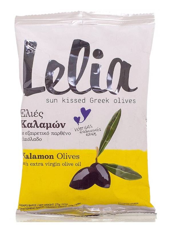 - Kalamata (Каламата) – популярный греческий сорт, культивируется на полуострове Пелопоннес. Это крупные, миндалевидные оливки класса экстра. Их вкус – насыщенный, с фруктовыми нотками. Настоящие оливки Каламата продаются только с косточками.