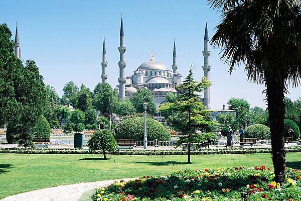 На втором фото – мечеть Султана Ахмета, находящаяся в Стамбуле. Отличительной особенностью турецких мусульманских храмов можно назвать особую форму купола – более пологую, чем в мечетях других стран. На третьей фотографии – мечеть Султана Ахмета изнутри. Довольно часто мусульмане приспосабливали под собственные покоренных народов. Примером тому может служить самый значимый памятник раннехристианской культуры – София Константинопольская, к которой турками были пристроены минареты.