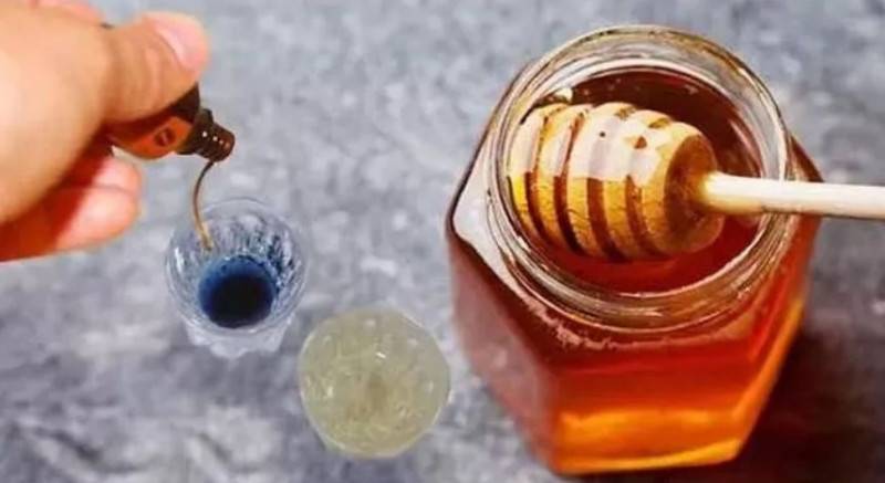 - В раствор воды и меда нужно капнуть йод, что поможет обнаружить муку или крахмал. Если они действительно есть, раствор посинеет.